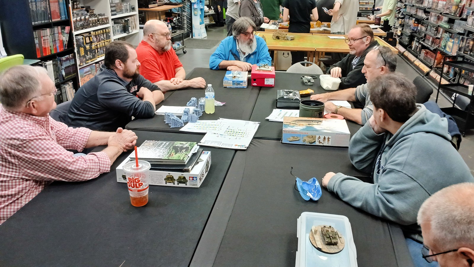 March 12, 2024 (Our last meeting was held on Tuesday, March 12, 2024, from 6 – 8 pm at the FireFly Toys & Games, Columbia (NE). We had 12 club members in attendance, and we also had a guest William “Bill” Campbell, who decided to join the club. Those at the meeting brought 14 models for Show & Tell. Kevin Cook ran the meeting. For the Raffle, we had a Tamiya 1/48 scale “German Panzer Grenadier Set, Late WWII”, kit #32514 (missing a couple figures), won by Jeff Nelson.)